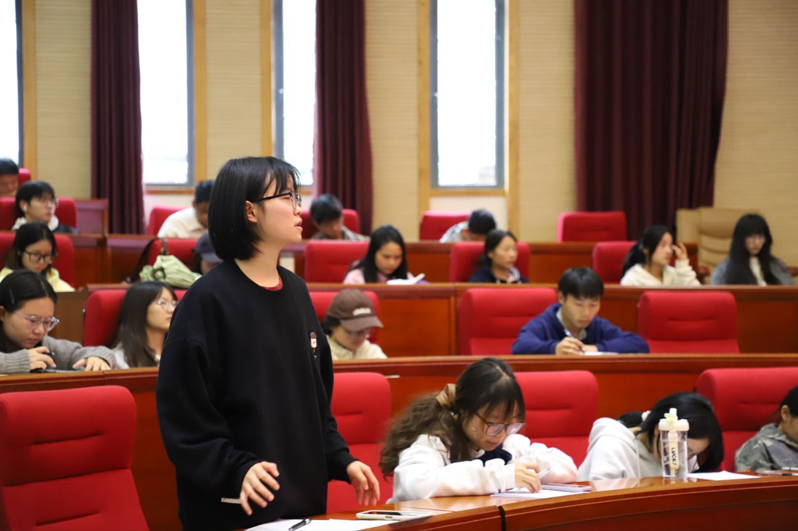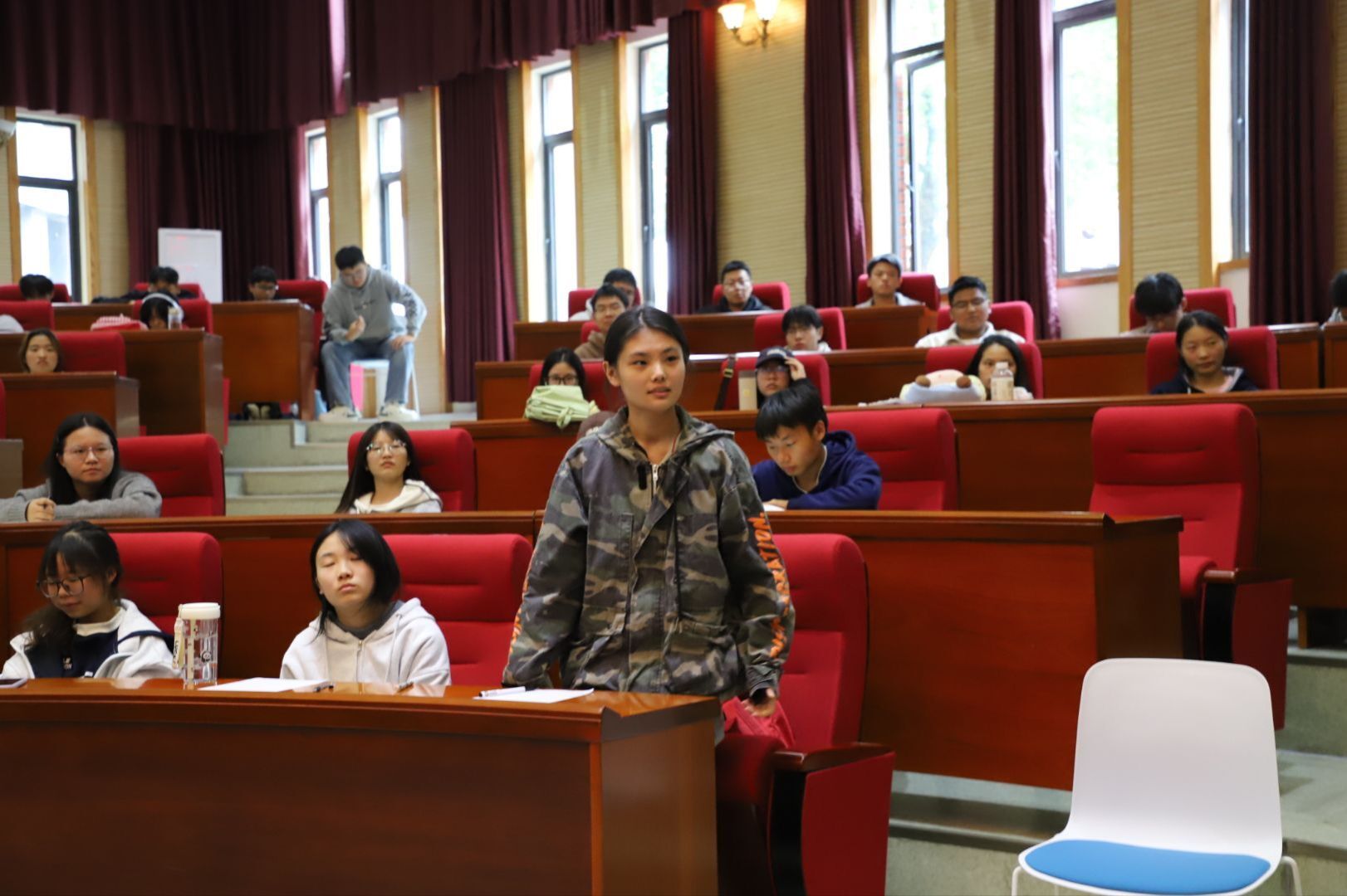活动现场氛围浓厚,座无虚席,彰显出师范生对优质教学实践的高度关注。张震老师以“生命进化发展史”为核心主题,构建“问题驱动—实验探究—理论升华”的三阶教学框架,展现出专业且系统的教学设计思路。课程开篇,张震老师以拉马克与达尔文的生物进化学说为脉络,结合经典生物学案例,清晰阐释两大理论的核心逻辑与实践依据,凭借扎实的学科功底与严谨的教学逻辑,为在场师范生呈现了一场兼具学术深度与教学启发性的“生物学教学盛宴”,为高校生物学科育人注入创新活力。