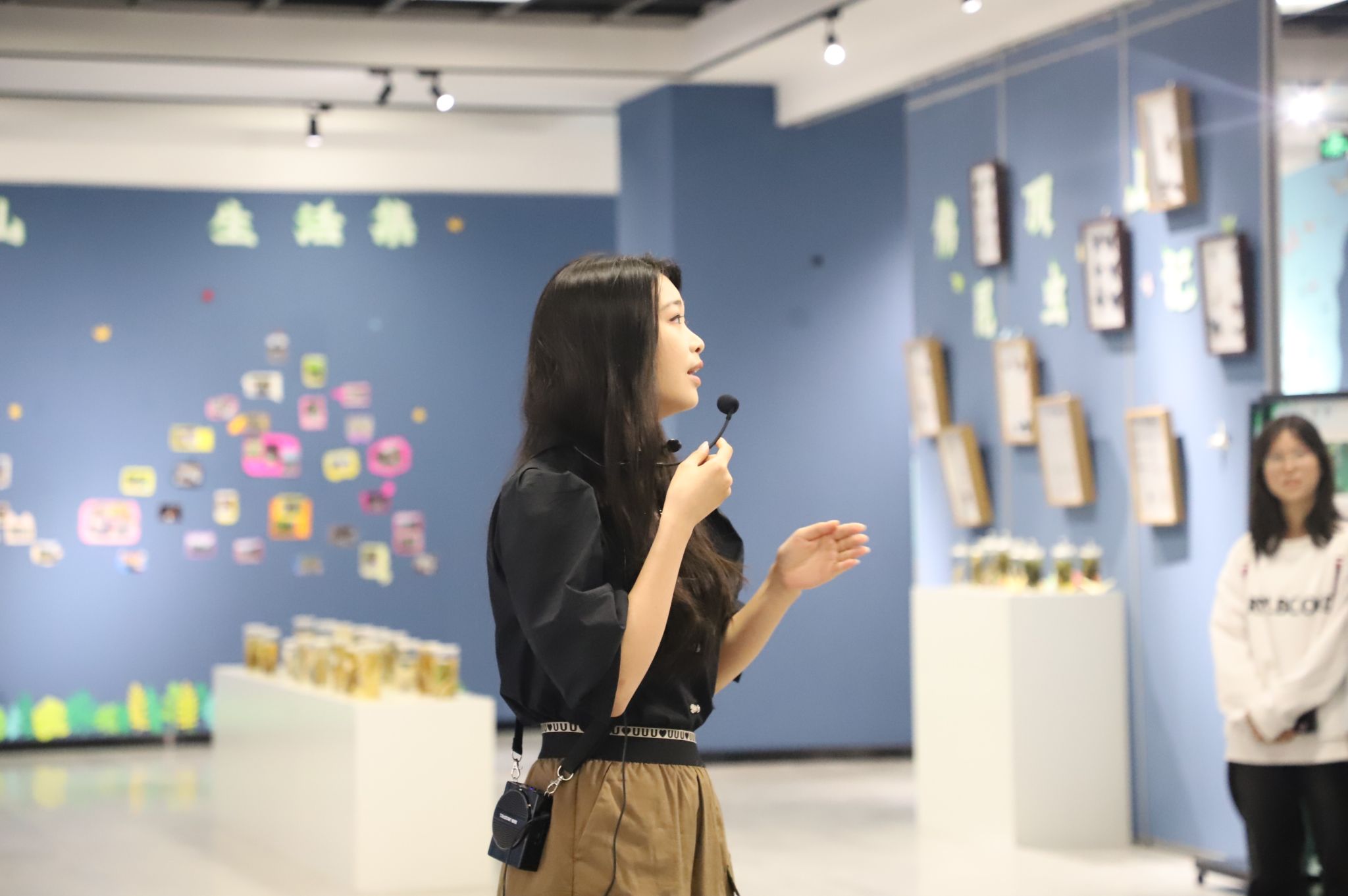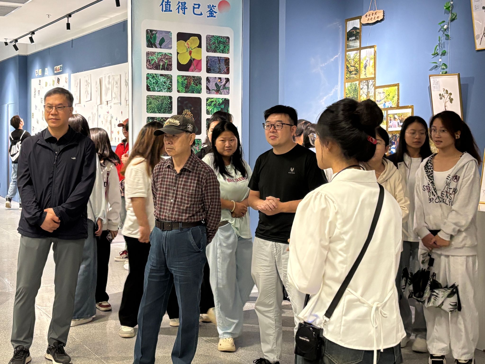 在热烈的掌声中,彭涛宣布野外综合实习成果展正式开展。在讲解员的引导下,师生们有序参观了来自贵州茂兰国家级自然保护区、贵州佛顶山国家级自然保护区及都匀斗篷山风景名胜区的动植物标本,让观众面对面了解生命科学学院培育的杜鹃花品种、桫椤幼苗、适应高钙环境生长的草莓品种,及已经商品化的藤茶、甜荞、高活性微生态制剂系列产品(百草鸡蛋)、黔益君等丰富的实践成果。大家认真聆听讲解,驻足观看标本、实践成果,深入交流探讨,展厅内处处洋溢着学术探索的氛围。