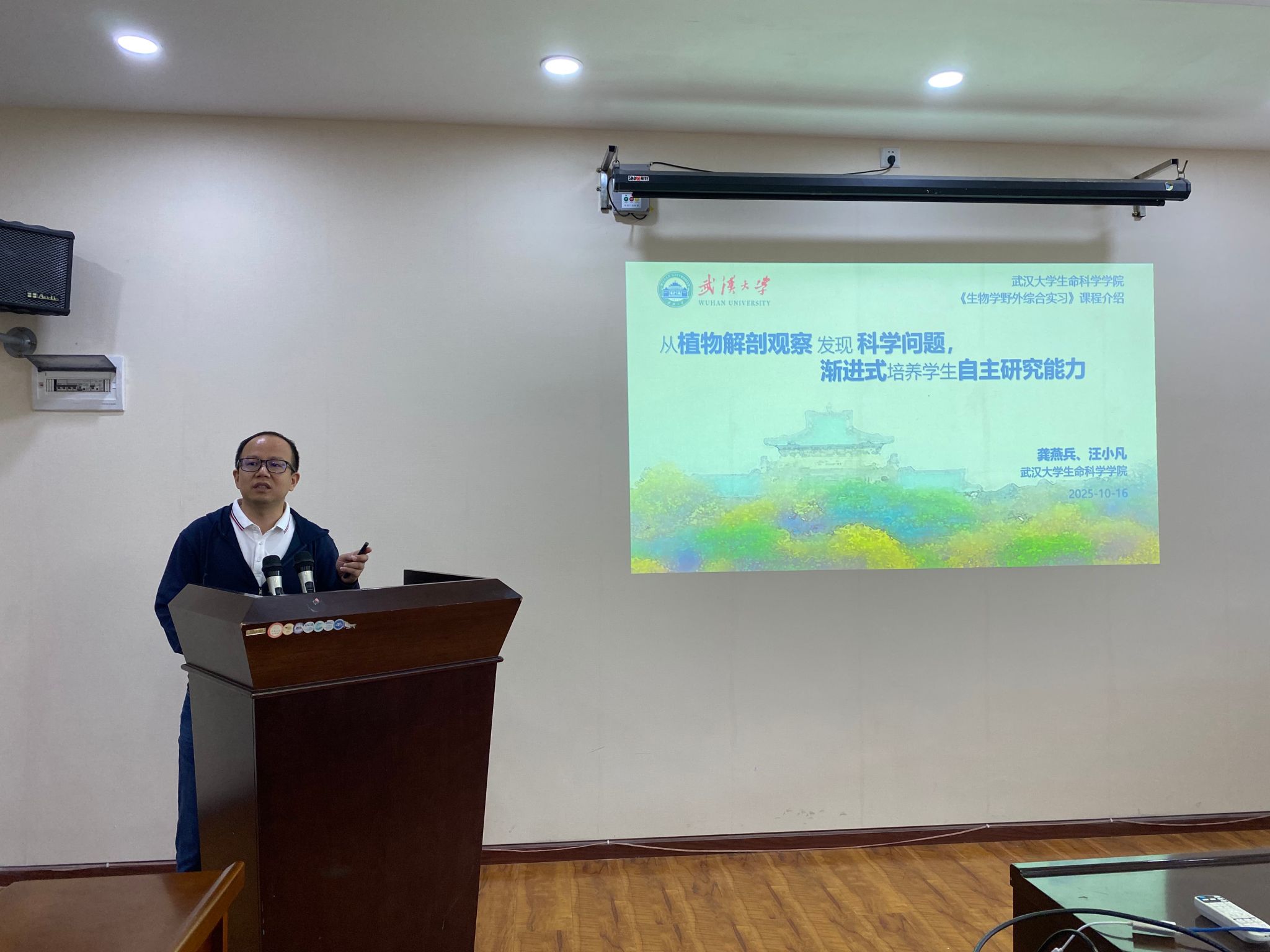 武汉大学帮扶团专家龚燕兵副教授、贵州大学生命科学学院副院长胡国雄围绕着动植物标本制作流程和方法,系统的讲解了标本采集整理、解剖剥离、烘干消毒、上台等工序进行了专题报告,重点强调了大学生自主科研能力的培养。