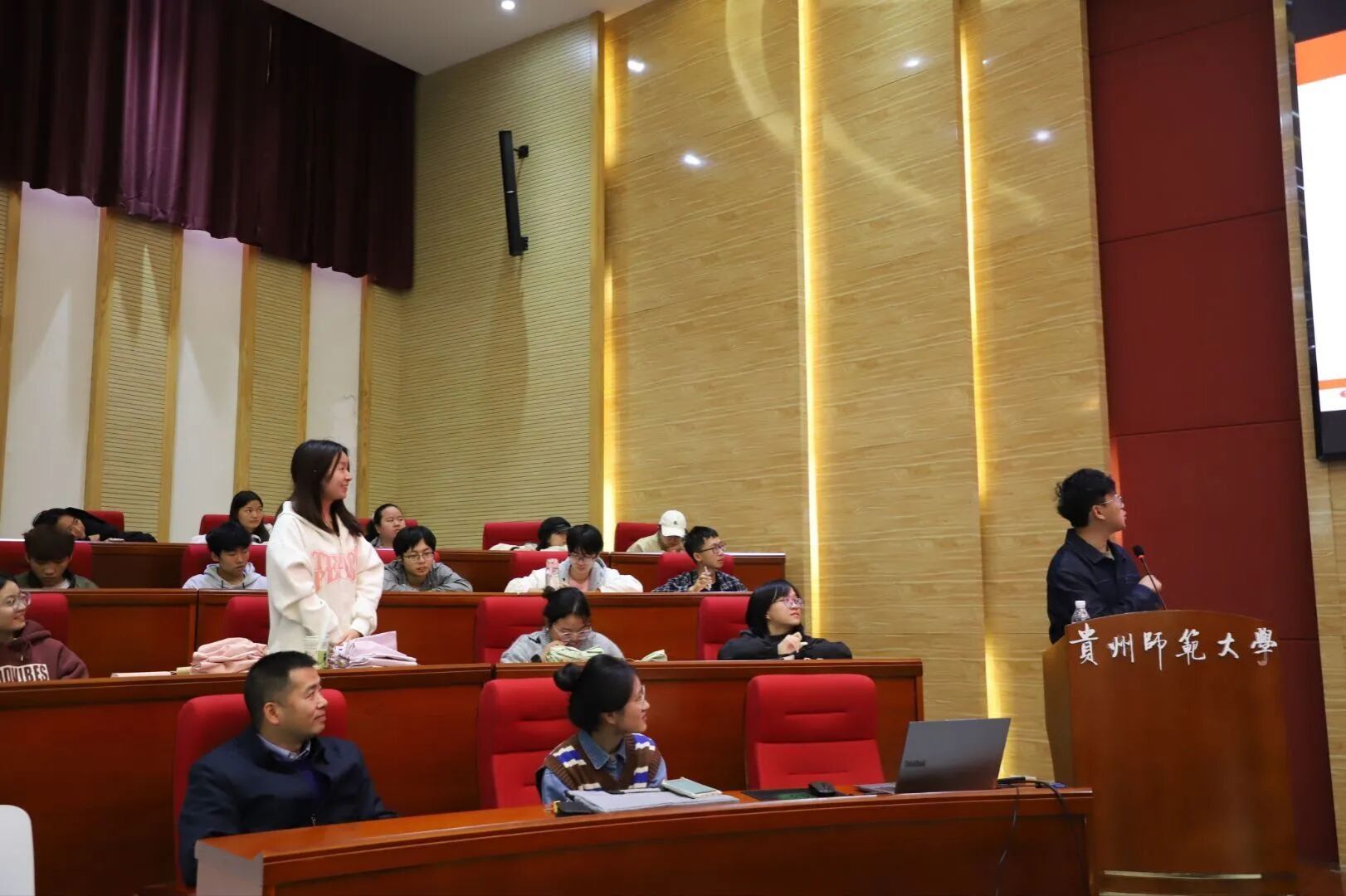 为传承校园香樟文化精神,厚植立德树人教育理念,涵养师生人文与科学交融情怀,2025年10月21日下午,生命科学学院首届香樟教学节 “躬耕教坛,生命育新”生物学特色示范课展示第四场活动在公教6101举行。本次活动以“深化生物学科核心素养培育”为核心,通过特色示范课展示与课程设计深度研讨,搭建起师生教学能力共建的优质平台,助力师范生教学实践能力与教师教学创新能力双向提升。展示课由生命科学学院副院长彭涛担任主持,特邀贵阳市观山湖区普瑞学校张震老师主讲,23级、24级全体师范生参与。