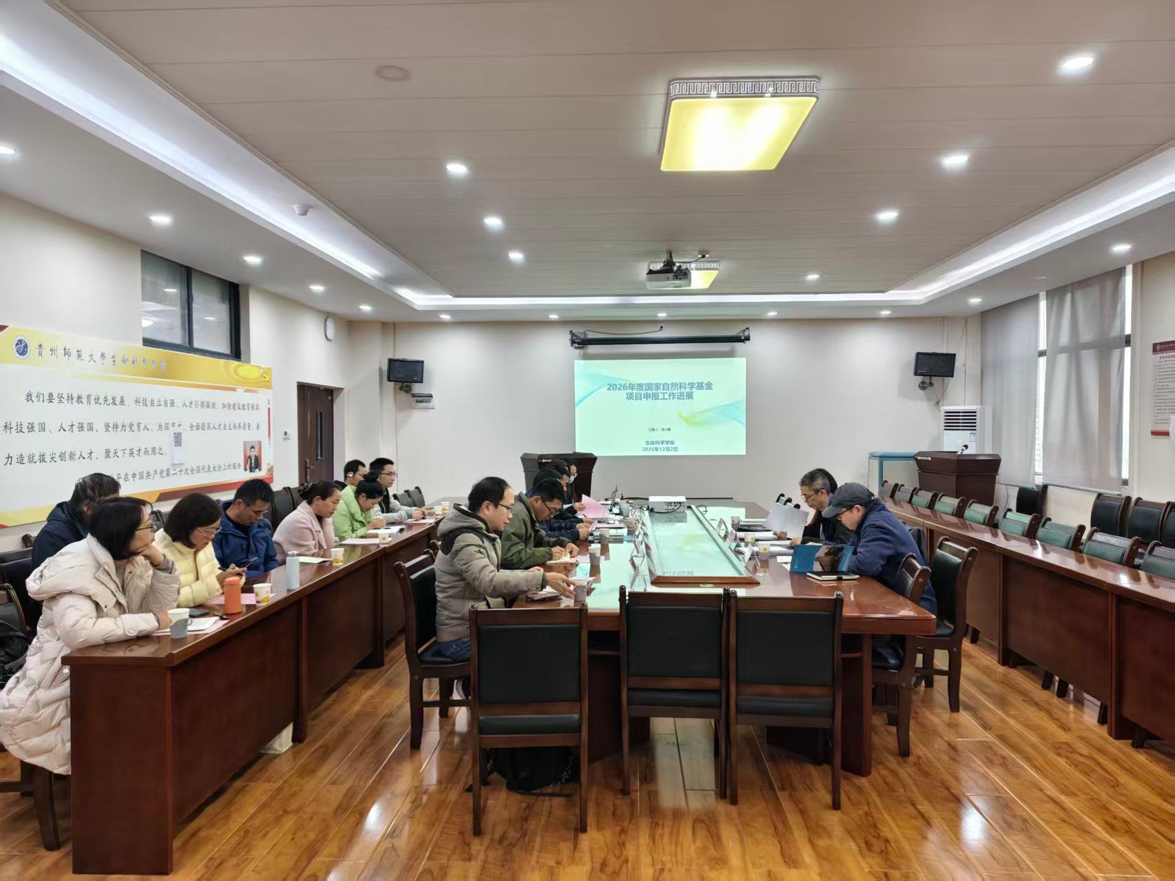 12月2日下午,生命科学学院在学院三楼1311会议室召开了2026年度国家自然科学基金申报工作推进会,副校长吴复忠,科学技术处副处长张丽君及相关人员进行现场指导。生科院党委副书记夏天,副院长彭涛、朱斌、徐小蓉,学院相关教师代表参加。会议由夏天主持。